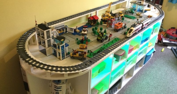 | DIY Lego Table with Train Track and Storage Space for Toys |